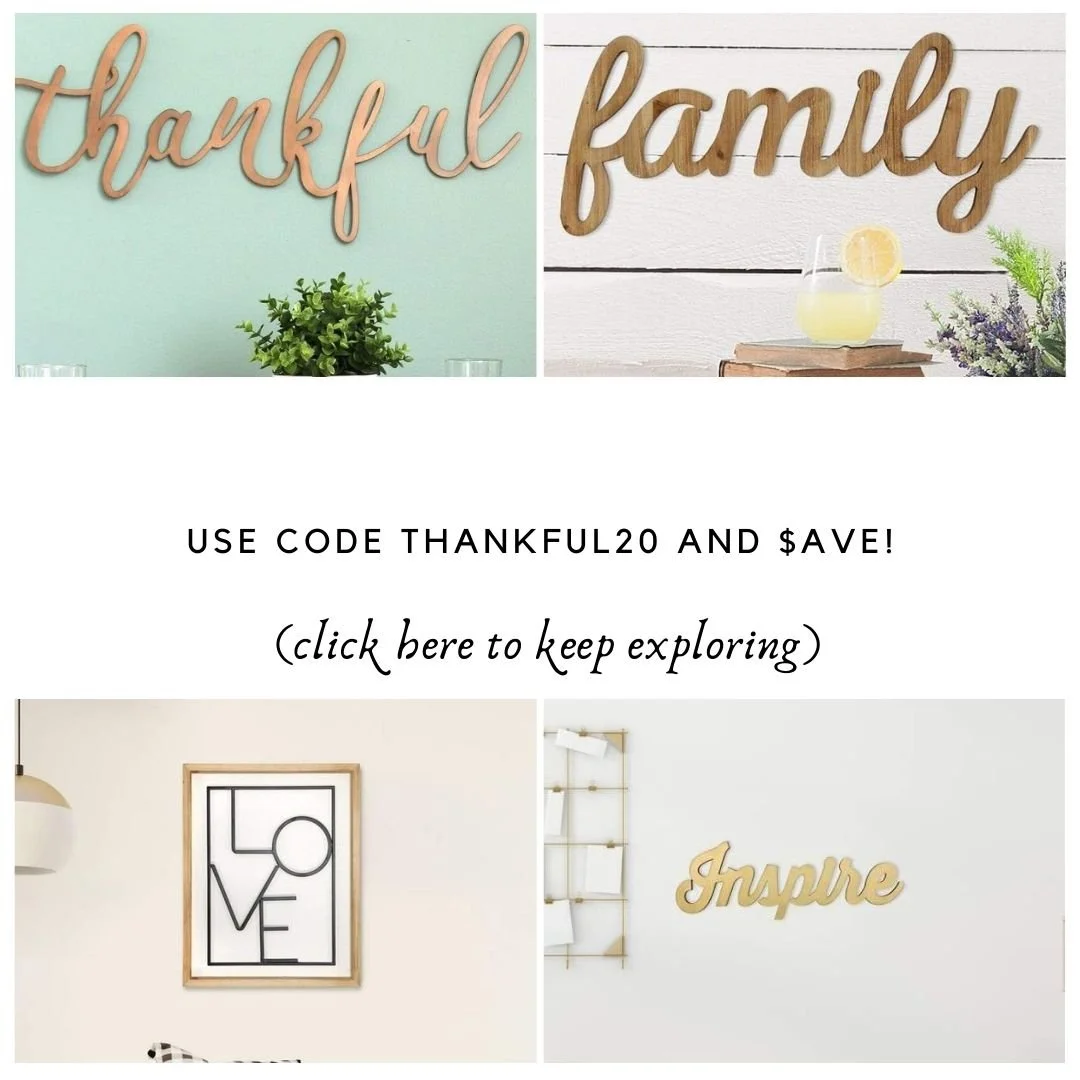 This edition is about surrounding yourself with things that remind you to be positive, grateful and present. What better way to make a statement of your intention than to use wall decor. Below is our household favorite this fall: the “THANKFUL” wall plaque that is keeping our spirits smiling (during a house move! - as seen on our Instagram).